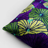 Fronds Chainstitch Embroidered Cushion Cover Blue, Purple and Green